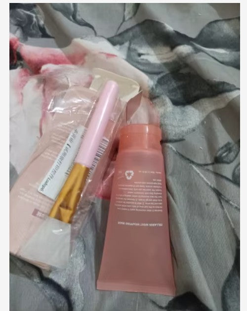 On cleansed, dry skin, apply a thin, even layer with the brush avoiding eyes, lips, brows, and hairline. Let it set 10–15 minutes until touch dry, sleep with it on, then gently peel off from the jawline in the morning. Rinse any residue and follow with moisturizer/SPF.